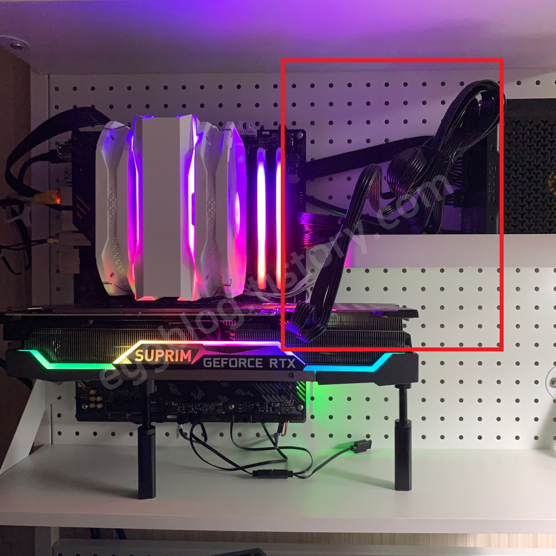 하지만 풀모듈러의 파워를 사용하지만 필수적으로 사용하는 케이블(메인보드, CPU, GPU) 이 상당히 정리하기가 어려운 상태입니다. 차후에는 극한의 RGB 뽕을 채우기 위한 리안리 STRIMER PLUS RGB 케이블을 구입해서 외부로 노출되는 케이블도 화려하게 바꿔줄 계획입니다. (추가적으로 각각 0.2, 0.3m의 연장용으로 나온 케이블이라 짧아서 지금보다 깔끔한 선정리 효과가 기대됩니다)