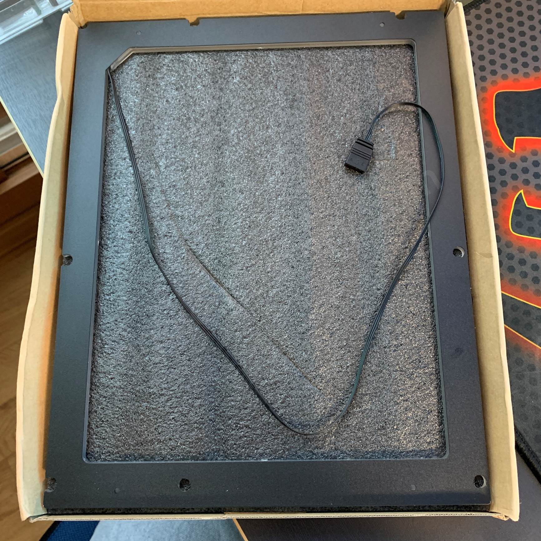 해당 제품은 ARGB를 지원하는 제품으로써 메인보드와 케이스 사이의 공간에 넣어주는 제품입니다.