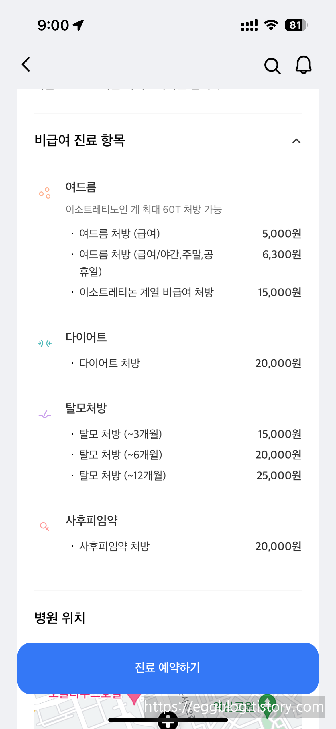그중에서 이소티논을 처방을 저렴하게 하는 선생님을 골라 예약을 실시했습니다.