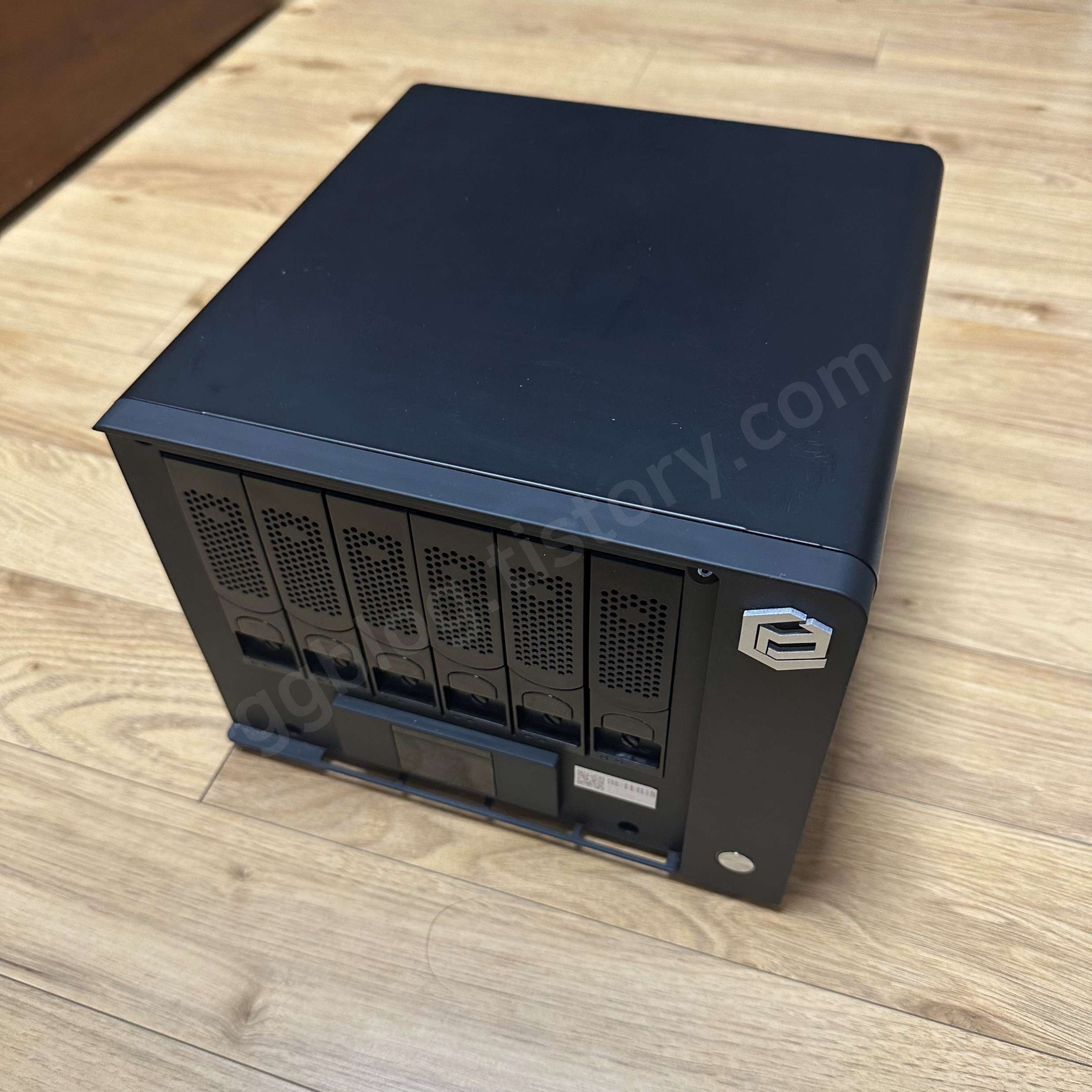 HDD 6개를 넣을수 있는 6Bay NAS용 케이스입니다. 디스크 트레이 6개 모두 깨끗한 상태이며, 퀄리티 역시 훌륭한 상태입니다. 시놀로지와 비슷한 가이드 좌우에 HDD를 고정하는 가이드로 고정시키지만 불안한 느낌이 있어서 고정하는 나사를 따로 구매하여 고정시켰습니다. (구매처 본문 하단 참조)