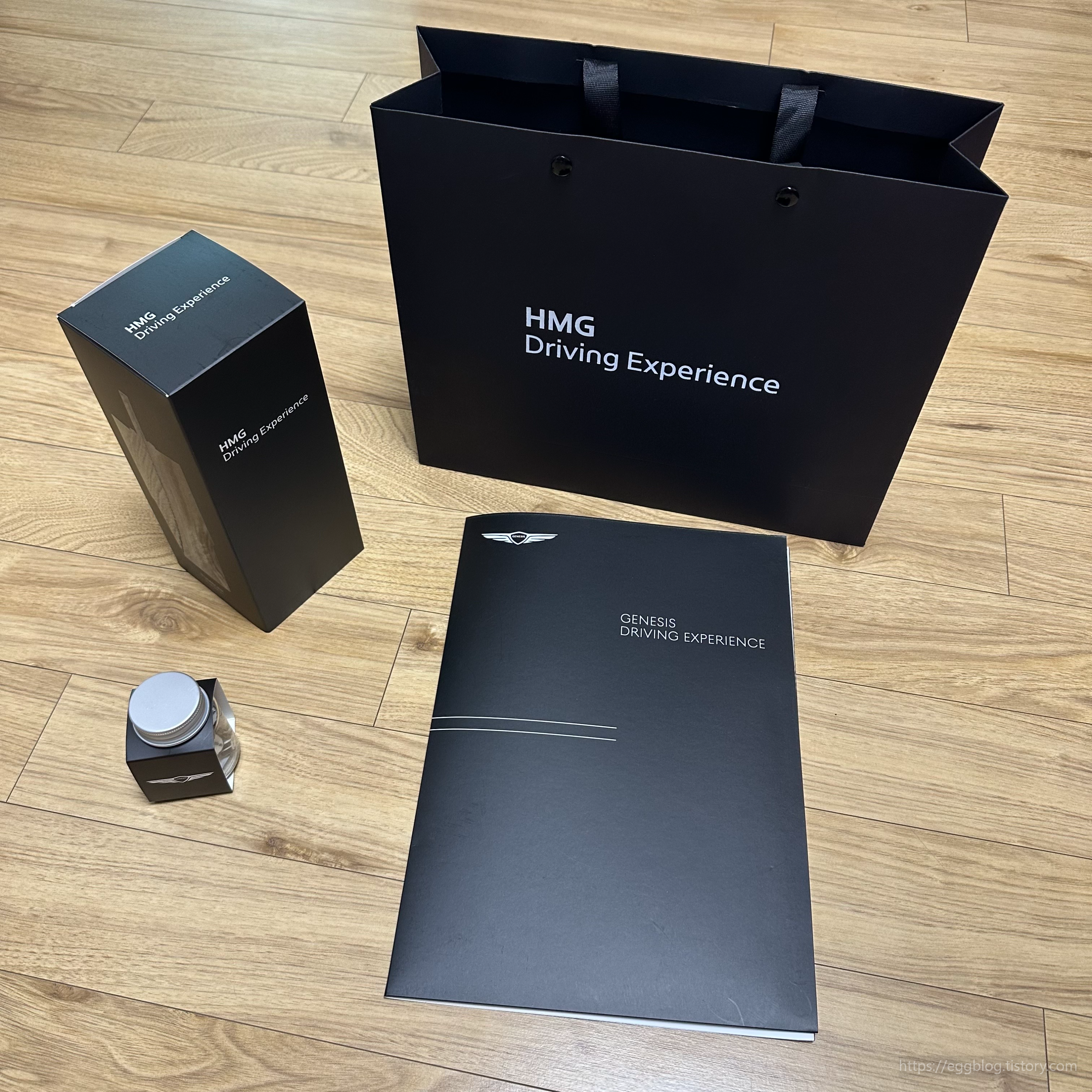 마지막 주행은 약 100KM 이상의 속도로 서킷주행하고 교육을 마무리 지었습니다. 서킷 한가운데에 잠시 정차 후 포토타임을 갖고 센터로 복귀하고 인증서 및 기념품 증정을 끝으로 프로그램은 끝입니다. 쇼핑백 안에는 프로그램을 이수를 했다는 증명서와 제네시스 캔디, 스탠리 스타일의 텀블러가 함께 들어있었습니다.