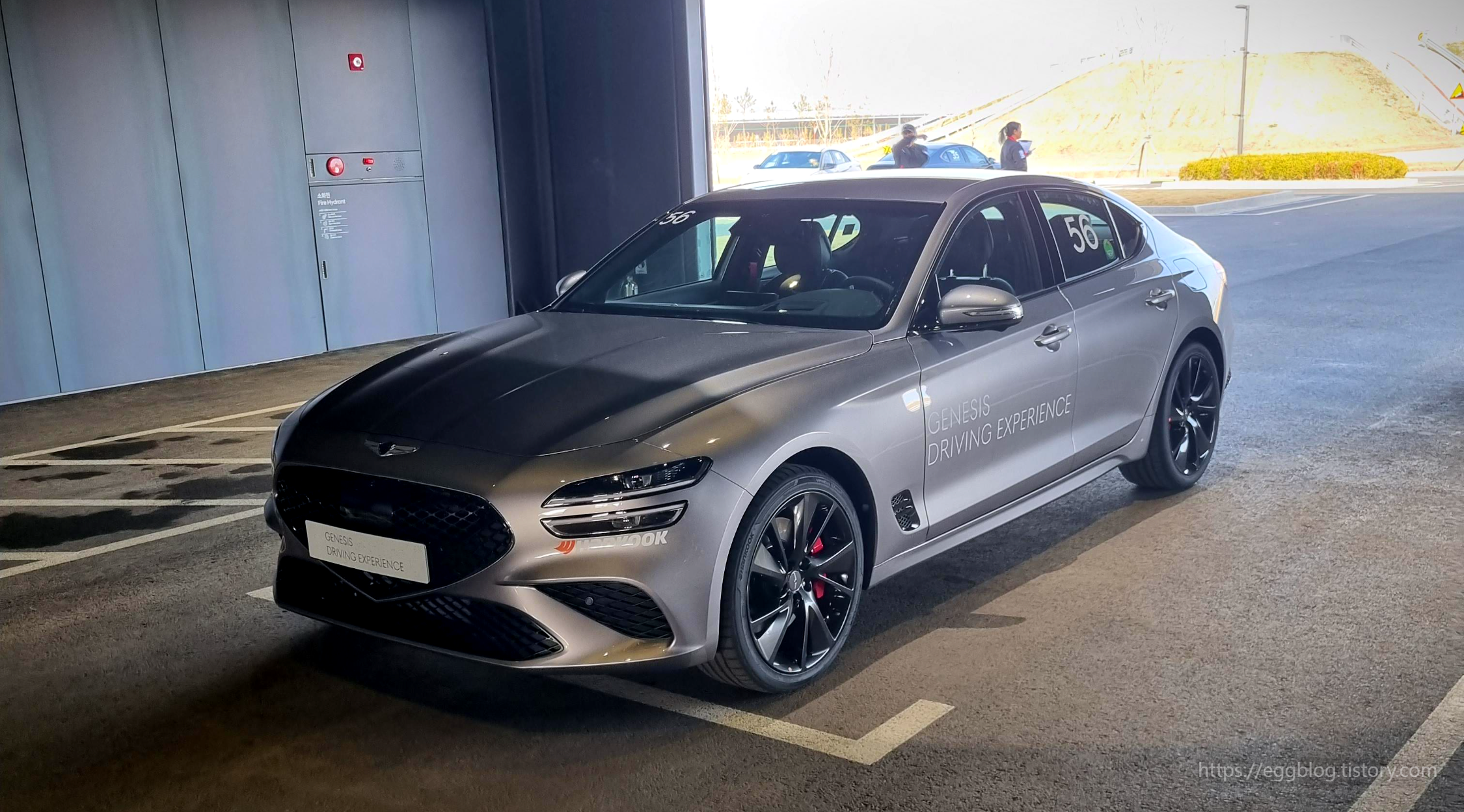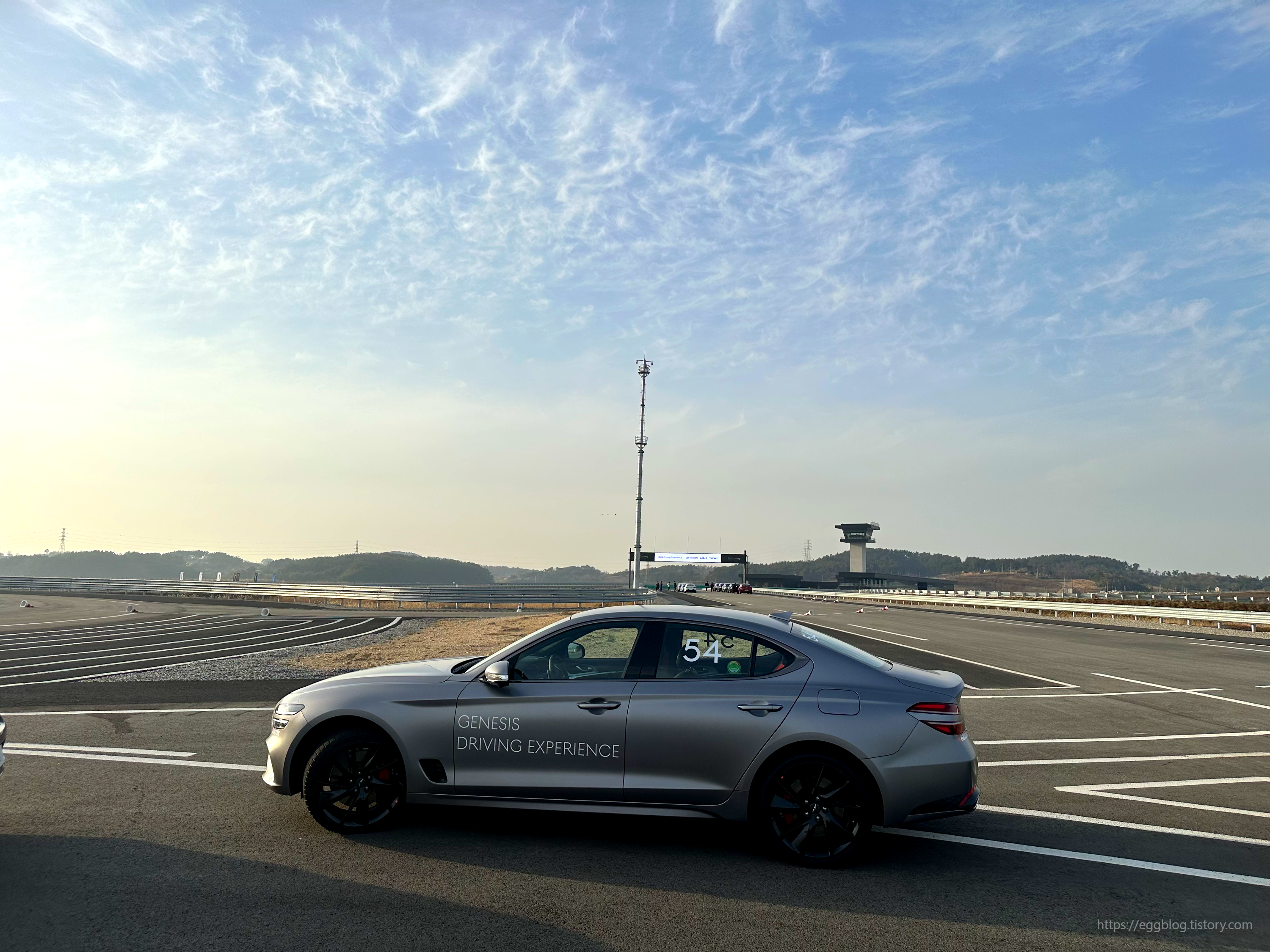 클래스를 빠져나와 0번 차량은 인스트럭터분이 탑승, 1~4번 차량은 클래스 참가자가 각각 착석하여 출발합니다. 차량은 G70 2.5T AWD로 진행합니다. 2.5T 사륜구동 차량으로 초보자도 차량을 쉽게 컨트롤하고 서킷 주행에서 예상치 못한 안전사고에 대비한 선택이라고 생각합니다.
