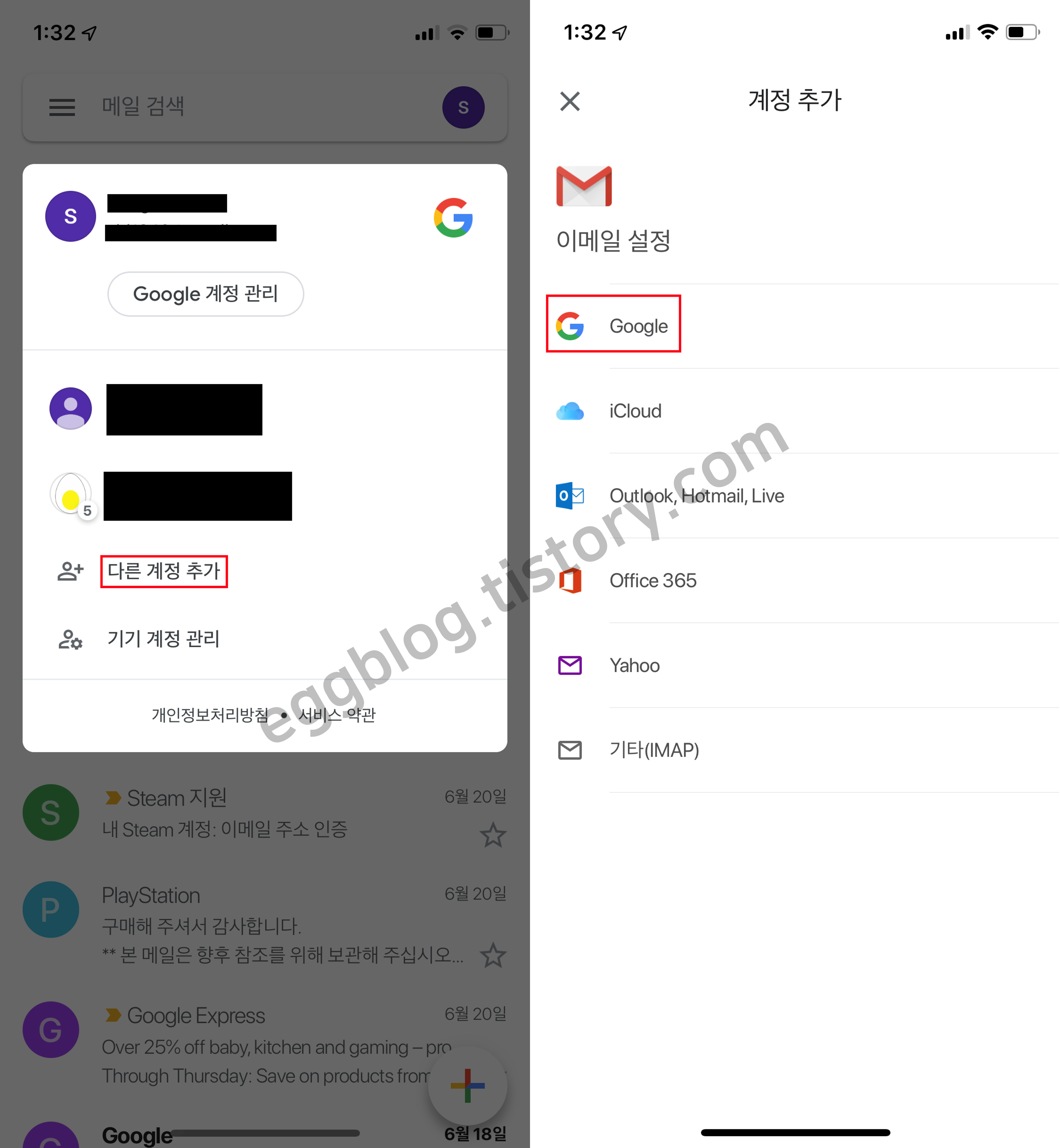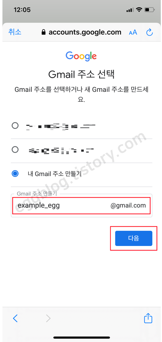 안드로이드 or ios용 구글 메일 앱을 통해서 계정을 만드는 방법입니다.