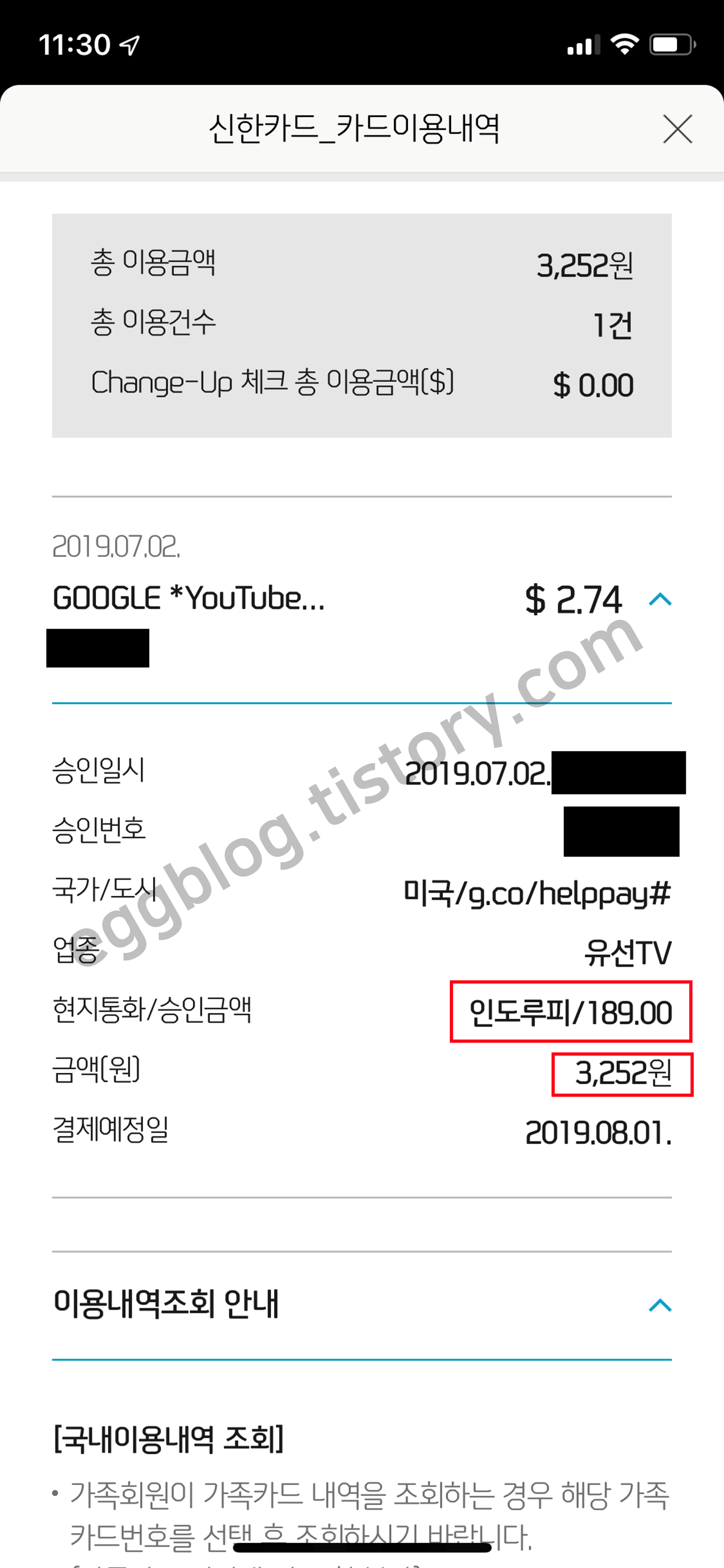 189루피는 달러로 2.74달러가 결제되었으며, 다른 가족 계정 5개 모두 정상적으로 유튜브 프리미엄이 유지된 상태입니다.