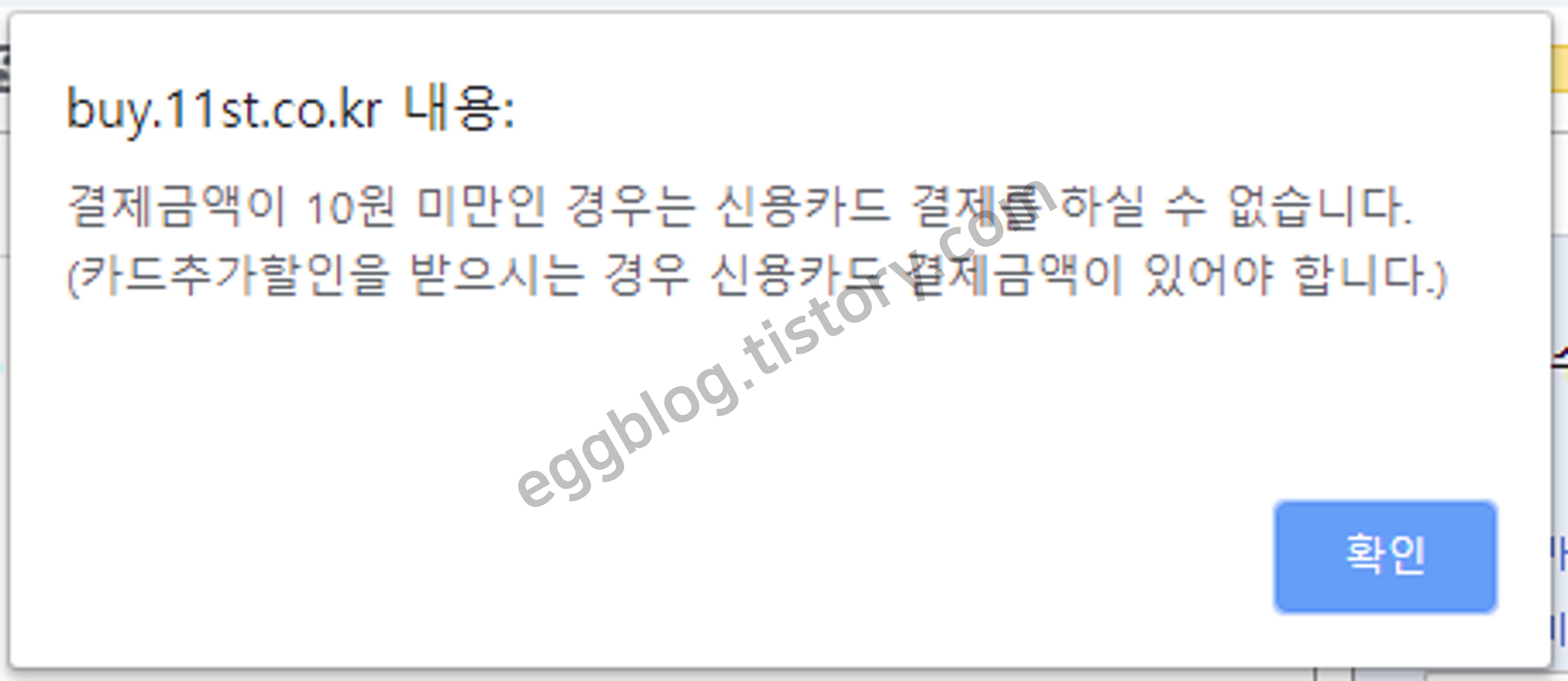 가 아니라 10원 이상을 해당 카드사 카드로 결제를 해주셔야 합니다.