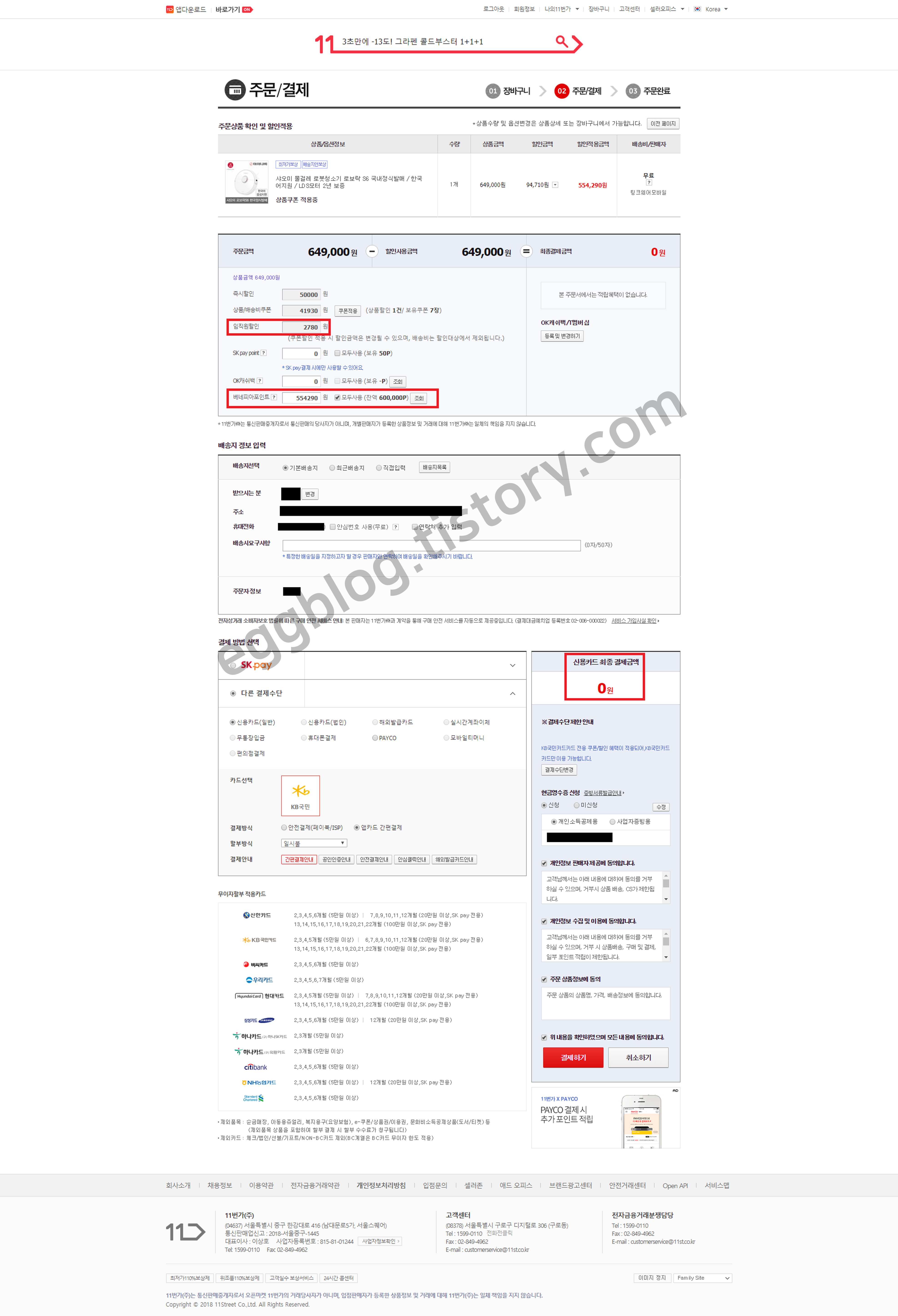 이렇게 그냥 카드 할인 쿠폰을 받아서 포인트를 적용해서 구입을 하면 됩니다.