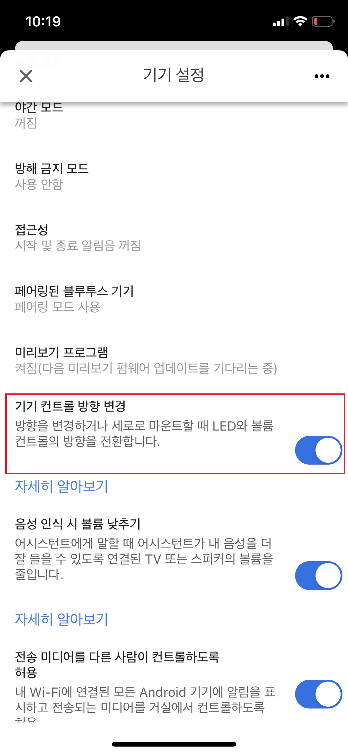 부착후에는 구글 홈 미니 기기 설정에서 꼭 기기 컨트롤 방향 변경을 해주시면 LED 방향을 변경 가능합니다.
