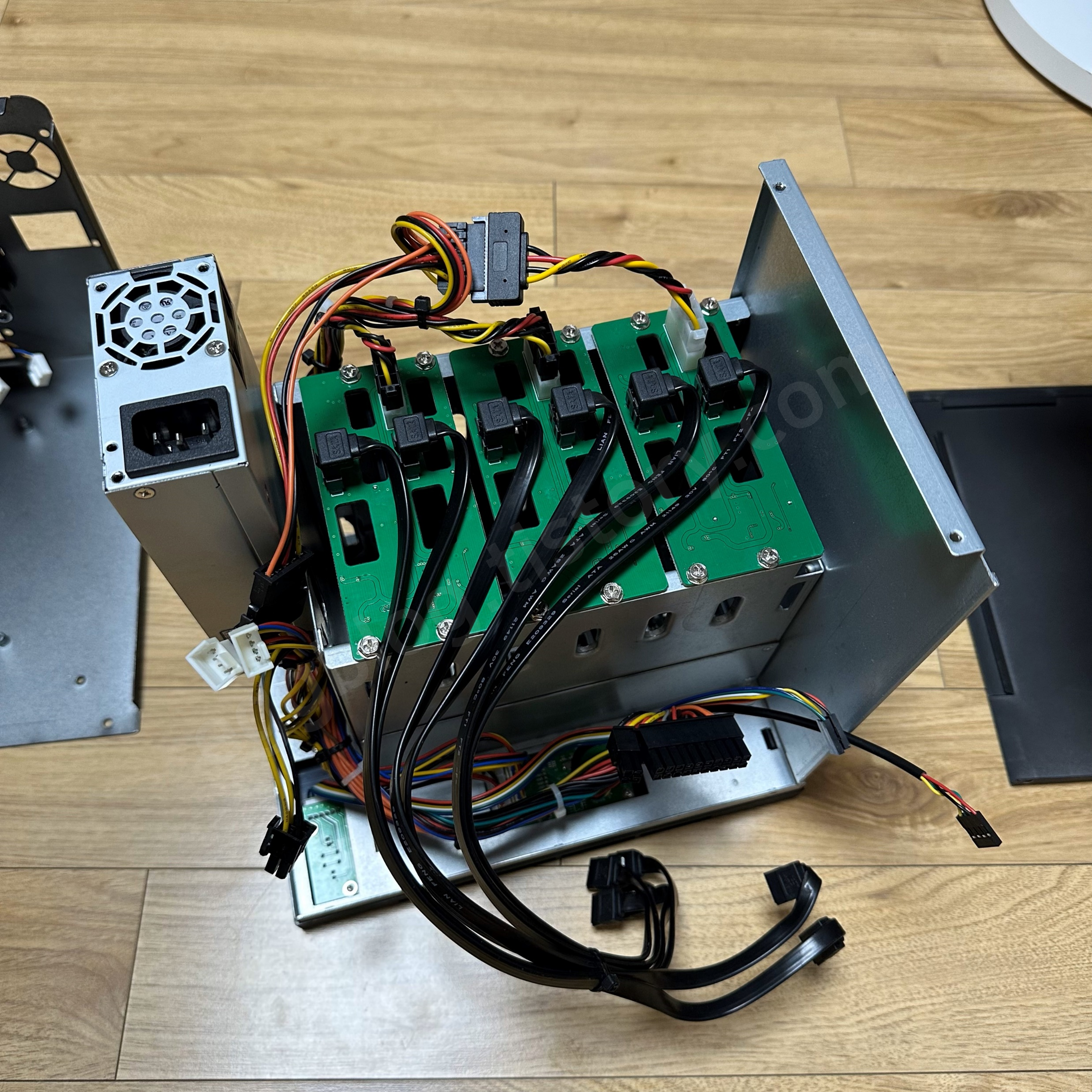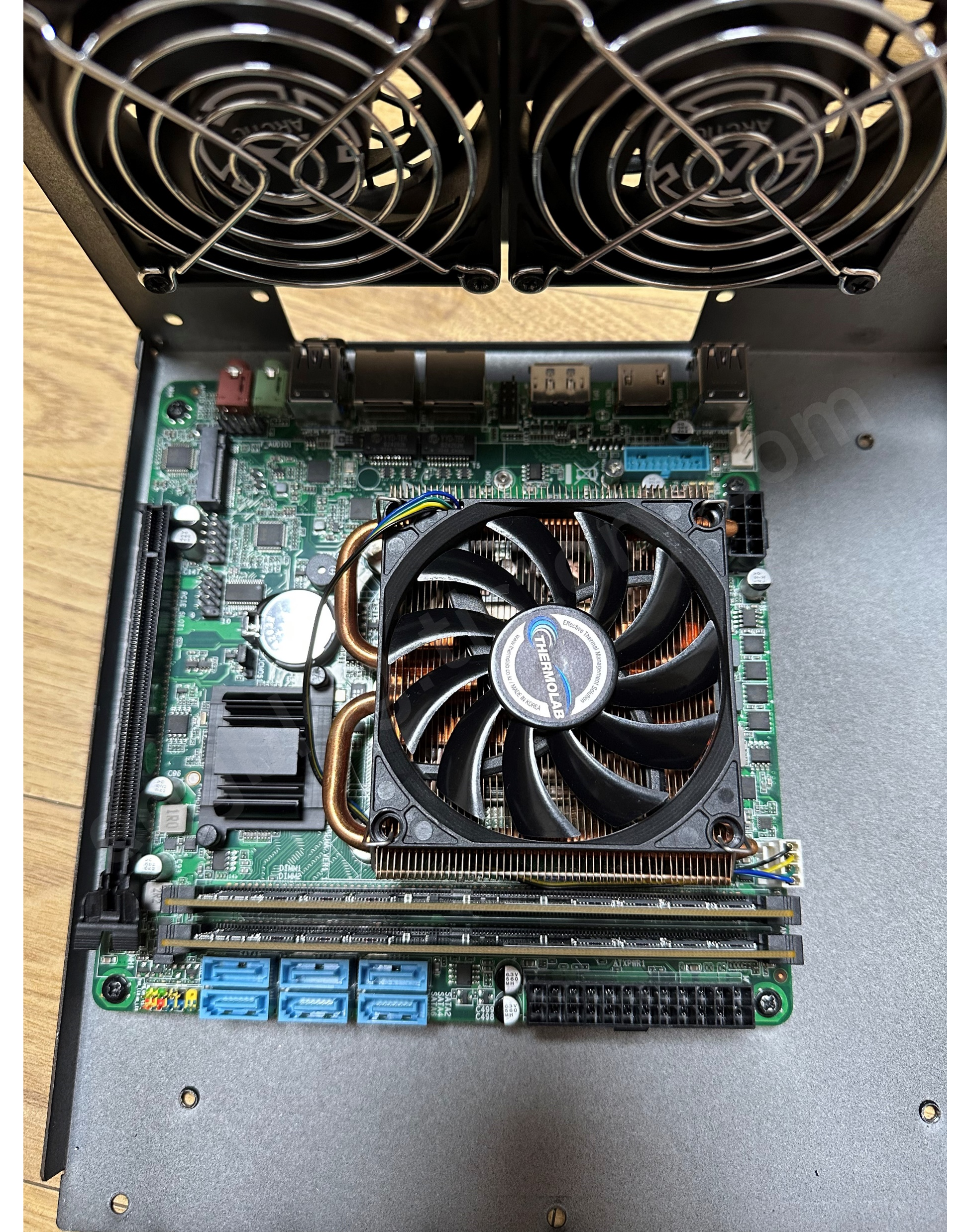 작은 사이즈에 HDD 6개와 메인보드, 파워까지 넣기위해서는 17*17 사이즈의 m-itx만 설치가 가능하며 파워는 Flex ATX 파워만 지원합니다. 대체적으로 수요가 적은 부품들이다 보니 가격은 비싸고 성능은 떨어지는 단점이 있습니다.