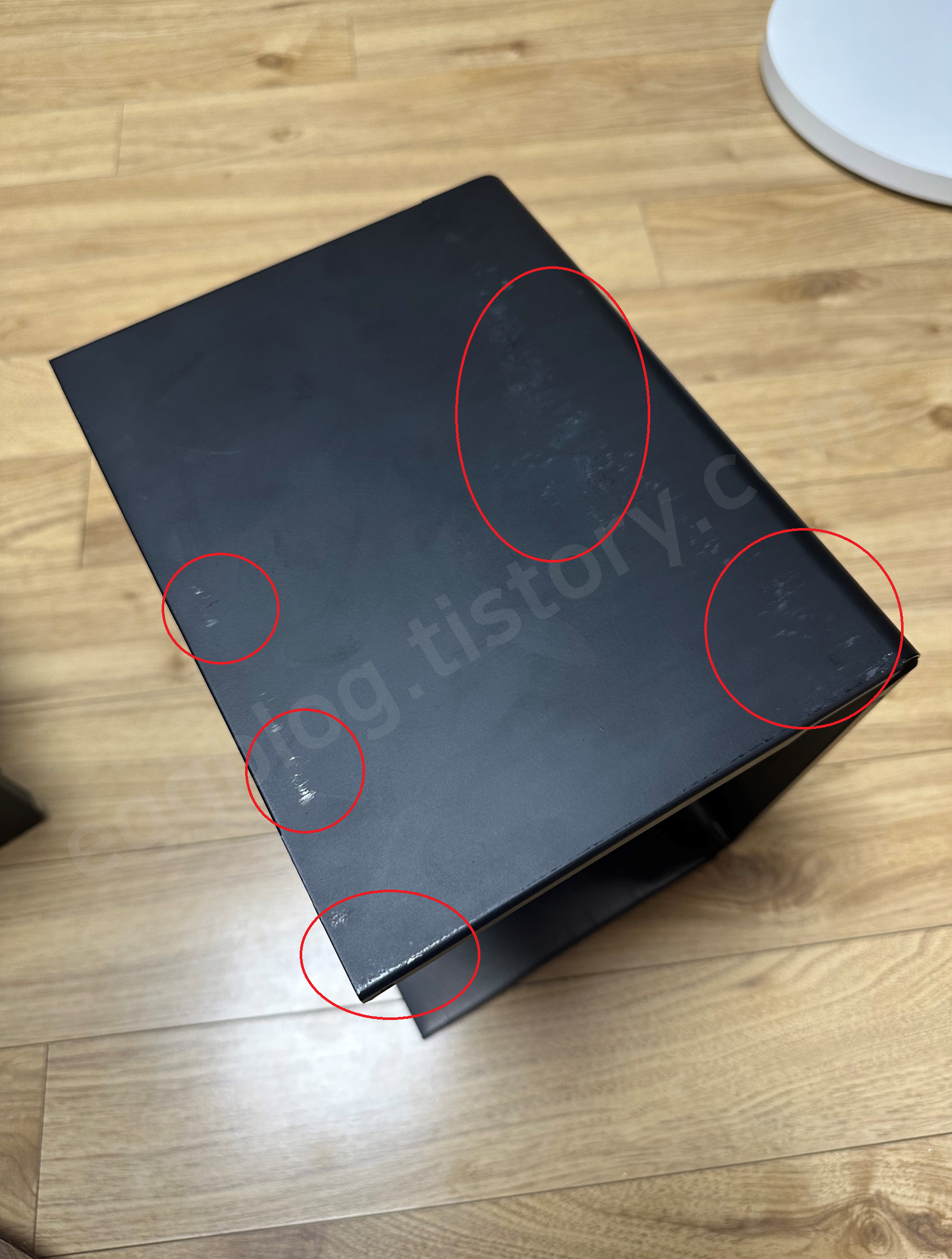 중고제품으로 알고 구매했지만 좌측 철판 부분의 기스를 제외한 모두 깨끗한 상태이며, 파워 역시 미사용 같은 느낌이 들정도로 쿨러에 먼지 하나 없는 상태였습니다.
