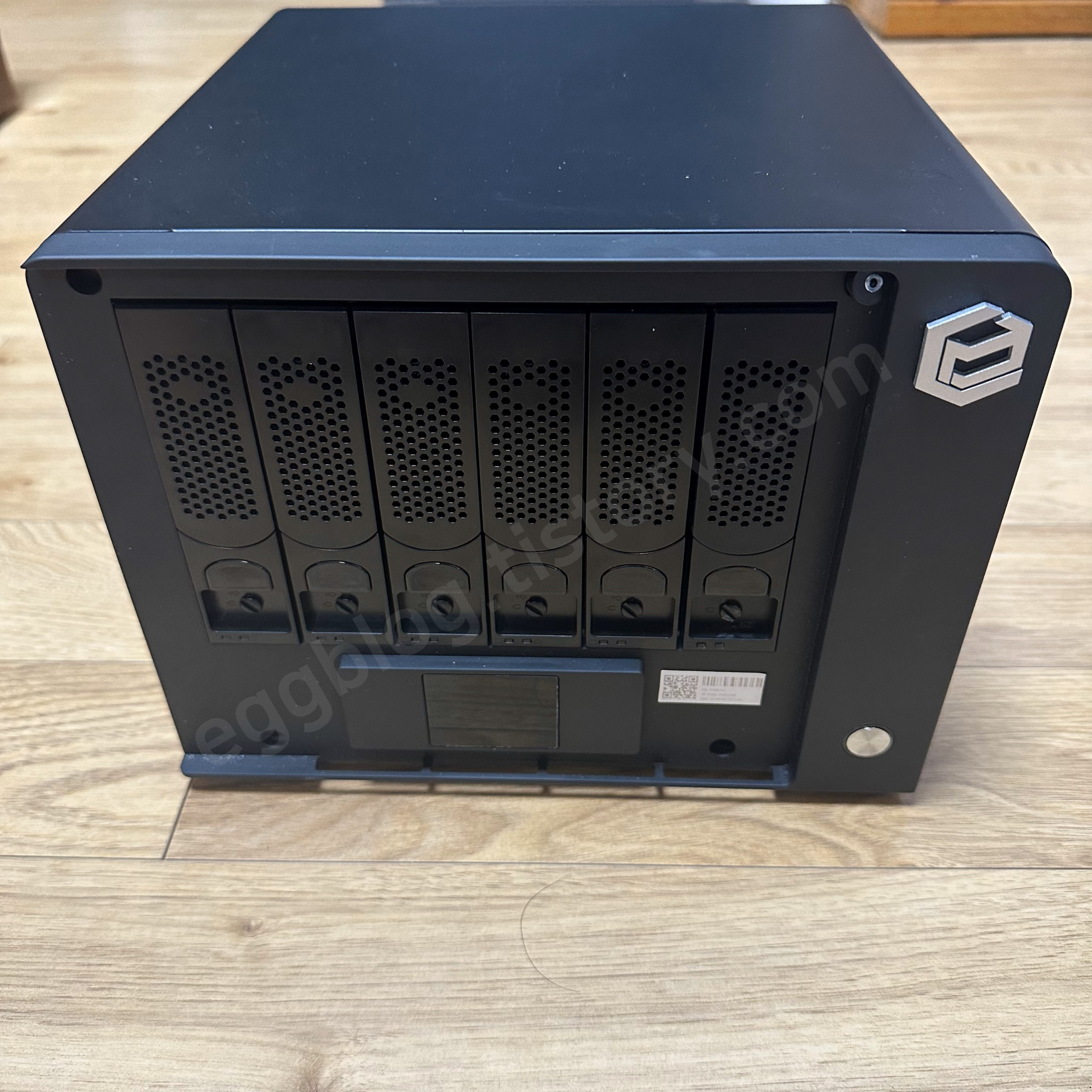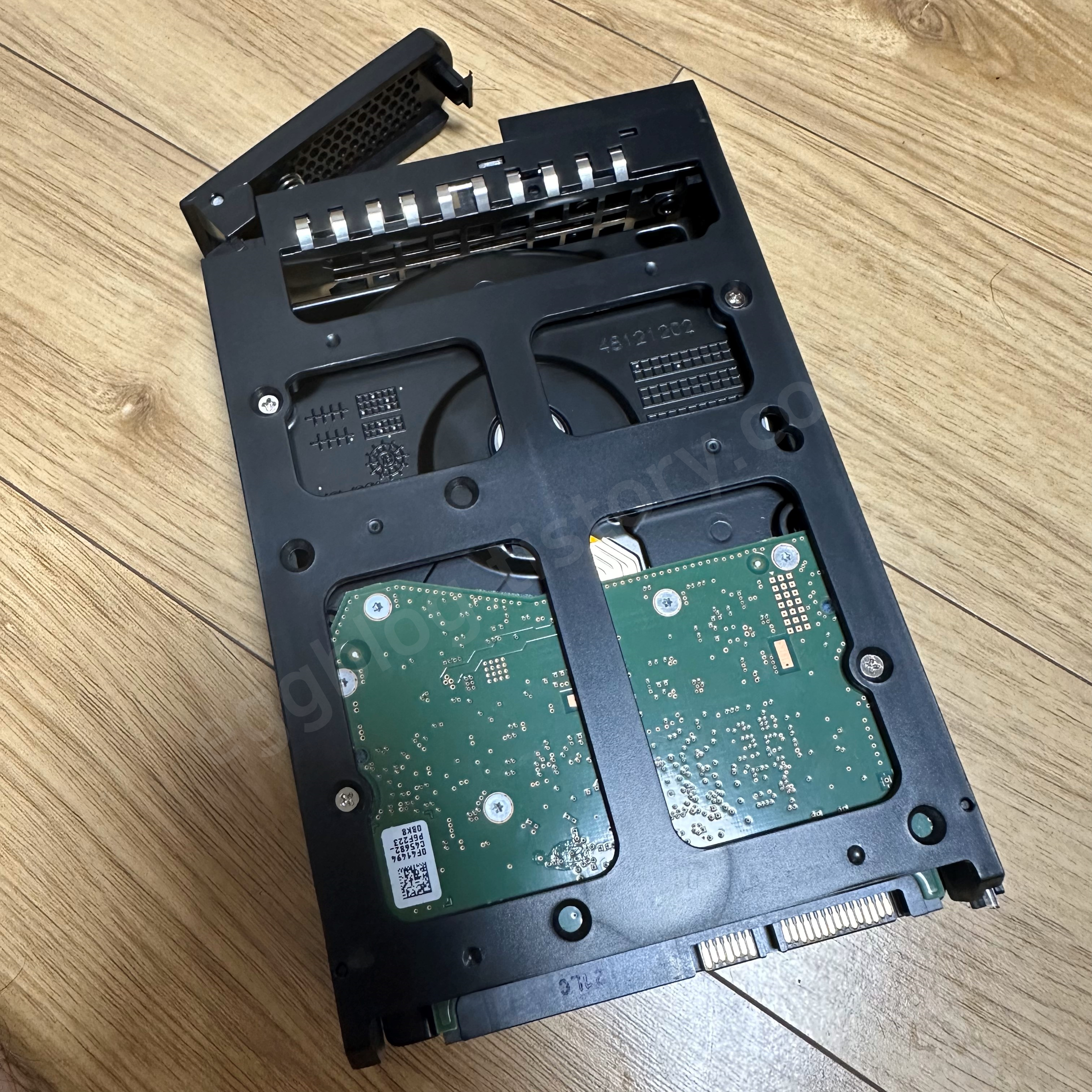 HDD 6개를 넣을수 있는 6Bay NAS용 케이스입니다. 디스크 트레이 6개 모두 깨끗한 상태이며, 퀄리티 역시 훌륭한 상태입니다. 시놀로지와 비슷한 가이드 좌우에 HDD를 고정하는 가이드로 고정시키지만 불안한 느낌이 있어서 고정하는 나사를 따로 구매하여 고정시켰습니다. (구매처 본문 하단 참조)
